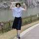 模特小姐搭配了天丝半裙