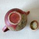 在这件作品中,在陶轮上精心制作的陶器上用铁漆画出百合花的轮廓,并用图画来表现花痴。朱红色刻意不均匀,呈现浓郁而鲜美的色彩。绘画,如着色,技术难度大,需要时间透过仔细注意温度和湿度控制来完成工作。盖子也经过精心搭配,所以它们配合得很好。盖子有一个盖塞。里面滤茶器的孔都是精心打出的小孔。易于倾倒且排水良好。高地也经过精心修整。