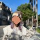 这款可以当作帽子也可以变成脖围,束口拉绳的部分可以在头顶绑一个蝴蝶结,也可以把帽子反过来绑好后藏在里面,一顶两用