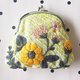 Summer Flowers Embroidered Purse - Pink, Yellow and Grey- Aida
