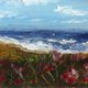 ACEO原创艺术油画与风景“海”。可收藏的微型绘画,2.5X3.5 英寸。