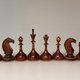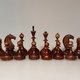 来自瓦尔代(俄罗斯小镇)的传奇俄罗斯/苏联象棋套装。 1947 年至 1951 年。因其优雅和完美的视觉和谐而被收藏家昵称为“贵族”。又称“瓦尔代贵族”。完全由木头制成。非常罕见的良好复古状态。一些小缺口被准确修复。这种颜色也非常罕见,因为它只在 1947 年至 1951 年间使用过。请放大照片以查看详情。我会给它的品质状态打 9 分(满分 10 分)。状况极佳。不附带板子出售,但是如果您需要板子,我可以建议您额外支付相应的板子,请为此写一条私人消息。对应37*37到40*40厘米的板子。特大号 8.8 厘米