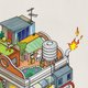 这张海报以插画风格打造了一座“台味游乐园”,把那些曾经陪着我们长大的风景,都重新拼回一座座充满活力的梦幻建筑里。