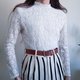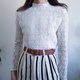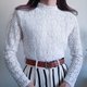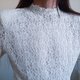 复古 1980 年代蕾丝衬衫,高领带肩垫,浪漫衬衫,