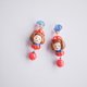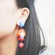 日系 黏土手作 撞色 紅色系耳環耳夾