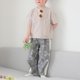 这是带有花卉图案的麻裤子。