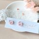 1. 饰品附上品牌纸卡,放入粉蓝渐层+珍珠光泽质感硬壳盒中
