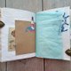 Mermaid junk book contains: tea dyed paper, archival papers, lace, charms, fabric cover