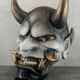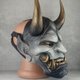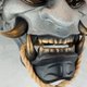 这款引人注目的灰黑色面具,饰有逼真的仿旧金色牙齿、獠牙与牛角,呈现出戏剧化且真实的外观。制作精致,无论是居家装饰、角色扮演、戏剧表演,或是赠送给喜爱日本文化的亲友,都是绝佳的选择。