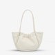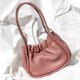 在拉扯间可爱变换的水饺包!配有长绳索肩带和宽大的开口褶皱顶部,侧边角可以拉进拉出,让包包形状转换自如。