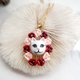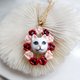 **圆型玫瑰花圈白猫咪颈链 镀9K真黄金 轻珠宝 情侣 情人节项链 可订制**