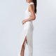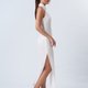 这款旗袍旨在突出女性曲线美。这件连衣裙采用精致的亮片蕾丝面料,高领款式,露背设计,以及传统侧开衩的细节。该旗袍可搭配低调的高跟鞋和亮眼的耳环打造迷人造型。