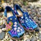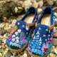 - Handmade shoes with a braid of indigo dyed hand-woven fabric. All hand embroidery designs and preparation takes quite a period of time to change the style. The body of the shoes is made of cotton fiber material to be hand-woven into fabric and dyed with natural indigo. Harmless, safe from chemicals