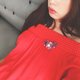 - 度假夏日严选之女生阔摆袖与衫身露肩橘红,灯红色上衣