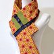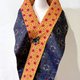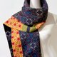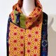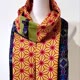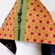 这块美丽的古董大岛䌷,以丰富的色彩织成像万花筒里美妙多变的图案。带着丝质的成分闪着微微的光泽、象征着生命力的麻叶纹、亮丽的橘色线条和黄色底带着强烈的生命力,像包覆在万花筒外侧的美丽和纸,丝毫不逊色。