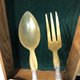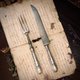 这组餐具分别是大型的肉类分食刀叉及沙拉分食匙叉,刀叉还是非常锋利,兼具实用及观赏性。