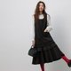 裙擺處木耳邊層層疊疊,每一步都伴隨著裙擺的飄逸靈動,溫柔又浪漫,盡顯法式風情。