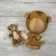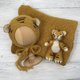 新生儿照片道具套装:玩具老虎、配套帽子、裹布