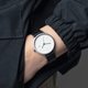 表盘去掉多余装饰:仅保留细黑指针、数字刻度与 “百” 字标识,白底 + 银壳的搭配像一张干净的画布,读时清晰又不抢风格,随便搭 T 恤或衬衫都能融成整体。