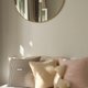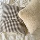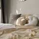 抱枕套边缘精致车缝,背面带有简洁标签,清新点缀。采用信封式开口设计,不使用拉链以减少金属部件。