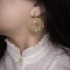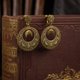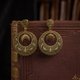 - 西班牙古董库存新品,大马士革工艺,阿拉伯图腾,圆环与月牙吊坠耳栓,Niello工艺