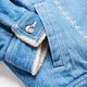 以浮世绘的雕琢工艺表现深刻的水洗,以江户时期浮世绘雕版师刻画图案的情感,将浮世绘精细的雕版精神,雕琢出属于江户胜牛仔裤纯手工匠艺的水洗加工表现。
