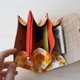 I applied enamel processing to the leather and drew a pattern like stained glass. The glass-like pattern is very cool.