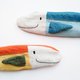 Each tuna is handmade with quality cotton and linen fabrics with hand-embroidered detailing. A zipper closure at the top of the body unzips to reveal the interior to hold your personal cutlery set.
