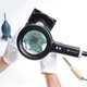 采用镜片直径 4寸 (100mm) 光学白玻璃材质的双凸球面透镜,透光率高,使成像更清晰锐利,透明的白玻璃可清楚看到物件的真实色彩,避免一般青板玻璃所造成的颜色偏差。真实放大倍率 2.3倍 / 5D 适合:__**产线品检、电路板焊锡、军事船舰模型、微缩战棋笔涂、牙材齿模制作、昆虫标本制作、金工珐琅蜡雕、金继锔瓷文物修复、袖珍微型绘画、缝纫刺绣、DIY手工艺、艺术美甲、中高龄职务再设计、60岁以上阅读等用途**__。