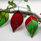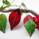 大红色和绿色的叶子。 让我想起冬天的一品红花。 床单尺寸 11x6 厘米(带尾巴 14 厘米)。 该套件包括 3 片叶子和一个带挂钩的交叉树枝。 树枝——天然浮木。