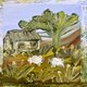 乡村别墅绘画 爱尔兰小屋艺术 小木屋油画 羊艺术品