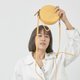 A mini leatherette round shape to carry everyday essentials. Can adjustable belt size. With top zipper closure. Complete with interior organization slot pocket and one slot zipper pocket. And canvas lining.