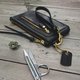 原色植鞣革搭配黑色荔枝纹,使用前与使用一段时间后的颜色变化参考。