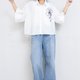 黑扶桑花六分袖衬衫 / 白色 透气舒适,春夏皆宜