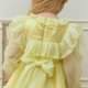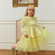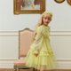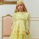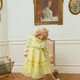 精致闪烁的 极光亮片刺绣、随光线变化色彩的 雪纺面料、柔美的 扇形蕾丝,以及带柔和珍珠感的 金属纱线——多种材质完美融合,营造更加 奢华与特别的氛围。蕾丝装饰与流动的荷叶边展现 波西米亚风格的时尚感,腰部配有 大蝴蝶结可调节设计,既舒适又优雅。整体采用 100% 清新柠檬黄,如同清爽的柠檬水般清新。