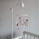 This baby mobile has a loop at the top and can hang from a hook in the ceiling or from a crib mount.