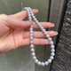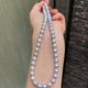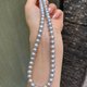 这是一款以天然色真多麻(Tennyo 真多麻)Akoya珍珠串成的经典珍珠项链,41cm 。带有冷调蓝粉光泽,如同晨曦映照下的湖面光彩。其中: