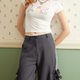 🌈 腰部饰有棉质蕾丝细节,裤身两侧从腰部滚边至裤脚皆饰有蕾丝滚边。