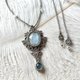 ◇ 尺寸:彩光月光石23.6x13.8mm/海水蓝宝10x8mm/坠饰整体约7x4cm/链长约76cm,可自由调整长度