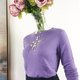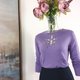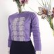 丝滑全羊绒女装套头毛衣, 于胸前分别缀以手綉天外来客情景图案, 手缝珠饰拼成的几何图形, 和以网布折成的排屋图案, 衫身是典雅时尚的紫芋色, 配半裙牛仔裤皮裤皆宜. 我们提供免费客定手绣字母服务 (于领窝后中位置) , 让毛衣成为个人专属。