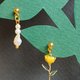 可爱小花耳环(罂粟/黄色)单边真珠款式 - 耳环/耳夹 - 铜/黄铜
