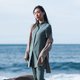 以手感细致但有挺度的蓝绿麻花布料 与 立领式衬衫 带入正式感,