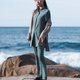并以更细节的方式处理设计:下摆的钮扣开衩、弧角X方角 的下摆线条 与 后领的撞色裂缝细节,