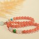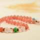 本品精挑天然南红樱桃红圆珠,每一颗都圆润饱满,光洁细腻,色泽红润。透光可见珠子里天然的色带色点,朱砂点细密均匀由内而外,色带自然随性,如云似霞。每一颗都绝无雷同,独一无二。搭配精挑难得一见的天然南红意形冰飘粉红底老型珠。意形冰飘珠且能起荧光的料子,透光可见较强荧光。颗颗莹润,胶质感超强。每一颗冰飘里的红自成图案,每一颗都值得你细细欣赏,把玩,品鉴。搭配天然高瓷绿松石,色蓝有铁线纹,天然高冰翡翠平安扣色彩清淡均匀,质地细密清润,透光性强,包含保护,安宁,平安太平的能量。搭配天然翡翠干青转运珠,祈愿好运,转运吉祥。天然南红荔枝冻圆珠,包金镂空玲珑珠,祈愿聪慧灵动。整体文艺古典,清新淡雅,自然随性。