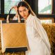 Tote bag (Size : h 45 x w45 x d8 cm.) and Mini tote bag (Size : h 40 x w40 x d7 cm.) represent this hand weaving motif. Using the unique weave pattern, texture and natural colour of Krajood as the main component of the bag combining with cow leather and cotton canvas.