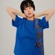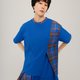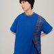 藍色拼接格紋剪裁設計 短袖上衣 T恤