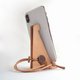 这是一款组装好的智慧型手机支架,由未漂白的牛皮制成。
