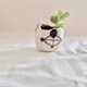 。。。超小脸迷你小盆栽。。。 材质 | 半瓷土,以1230 度烧制而成,手工捏制 尺寸 | W 3cmx3cm / H 3cm 贴心提醒 | 商品皆为手工制作,尺寸会有些微差异(+-10%),土色/釉色也会因土料/烧窑有些许不同。手作商品非开模大量生产,尺寸/釉色比较难一模一样,购买前请仔细思考。商品不包含植物。 / / / 产地/制造方式 手工捏制彩绘