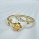 南洋金珠是珍珠中的最显尊贵的,大部分价格也令人望而却步。纱织小姐甄选出一枚直径为3-3.5mm的稀有小颗粒金珠,皮光细腻,浓金辉煌,像一枚抛光的小金豆,可反射清晰镜面影像。纱织小姐为其配置了满镶晶体锆石的自然主义藤蔓造型开口戒指,增加了舒适感和设计感,可以日夜陪伴,助您携秋水揽星河。