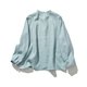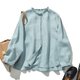 前襟细节设计 100% 亚麻荷叶边上衣 简约优雅 透气舒适 轻盈质感 浅水蓝色 240409-2
